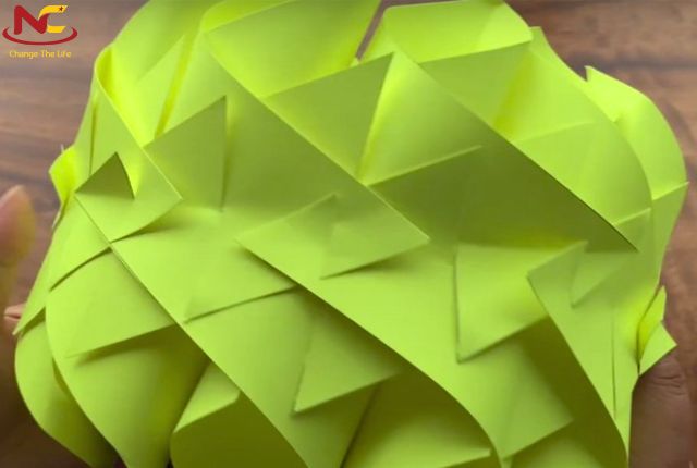 Bước 5: Nối các hình kim cương lại với nhau, xếp chúng lại theo đường viền đã cắt ở đầu giấy, xếp lần lượt đến khi hết phần giấy đã cắt.
