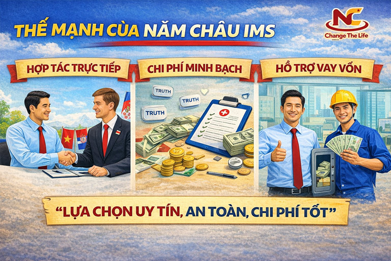 Việc lựa chọn một đơn vị phái cử uy tín không chỉ giúp bạn đảm bảo được quyền lợi về lương thưởng mà còn giảm thiểu rủi ro trong quá trình làm thủ tục. Năm Châu IMS tự hào là cầu nối tin cậy cho hàng nghìn lao động Việt với những lợi thế vượt trội: