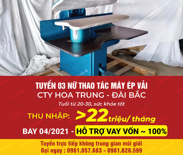 Đơn hàng máy ép vải tại công ty Hòa Trung là một trong những đơn hàng đi Đài Loan cho nữ tốt nhất tháng 4/ 2021. Thời gian tăng ca nhiều, công việc đơn giản.