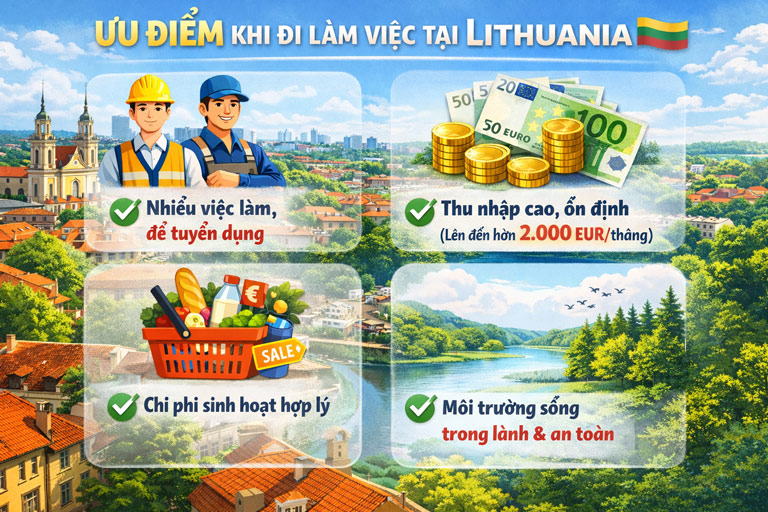 So với việc cạnh tranh gay gắt tại các thành phố lớn như Vilnius hay Kaunas, XKLĐ Lithuania tại Klaipėda mang lại nhiều lợi thế vượt trội cho người lao động Việt Nam: