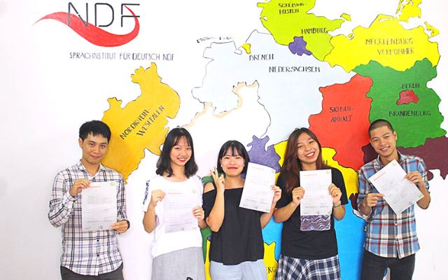 NDF là các trung tâm dạy tiếng Đức tại Hà Nội. Khi tham gia chương trình tại đây, bạn sẽ được giới thiệu nhiều chương trình cũng như các ngành nghề đa dạng khác nhau. Ngoài ra, NDF còn đào tạo đủ các kĩ năng từ nghe, nói, đọc đến viết cho học viên. Mỗi khoá học tại trung tâm dạy tiếng Đức Hà Nội, bạn sẽ trang bị những kiến thức đầy đủ để tự tin thi chứng chỉ và đạt được chuẩn đầu ra như mong muốn. Mỗi năm có rất nhiều học viên đã đạt được trình độ cao khi học tập tại NDF. Do đó, bạn có thể tham khảo các chương trình tại trung tâm NDF.